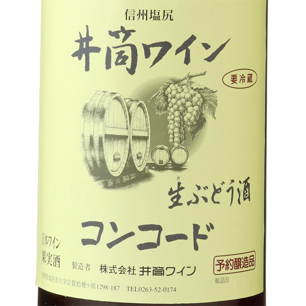 塩尻市および松本市産の、自社園と契約農家で栽培されたコンコード種を100%使用しています。一度飲んだら忘れられない鮮烈な味わいでリピーター多数の1本。見つけたら買いの希少品です!2025年は天候に恵まれ、色の濃い良質なブドウが豊作となりました。夏季から秋季の夜温が低い日が多く、高色素、高糖度のブドウとなりました。個性の強いぶどうのキャラクターで、ヴィンテージ差は少ないものの、2025年は秀逸な仕上がりとなっています。手作り感のある薄濁りの紫かかった赤色、イチゴやプルーン、ザクロ、ブルーベリージャムの香りに、完熟した果実の鮮烈な味わいがします。パン粉を使った料理との相性が抜群で、ローストチキン、フライドチキンとの相性も良くパーティーやクリスマスにもおすすめです。