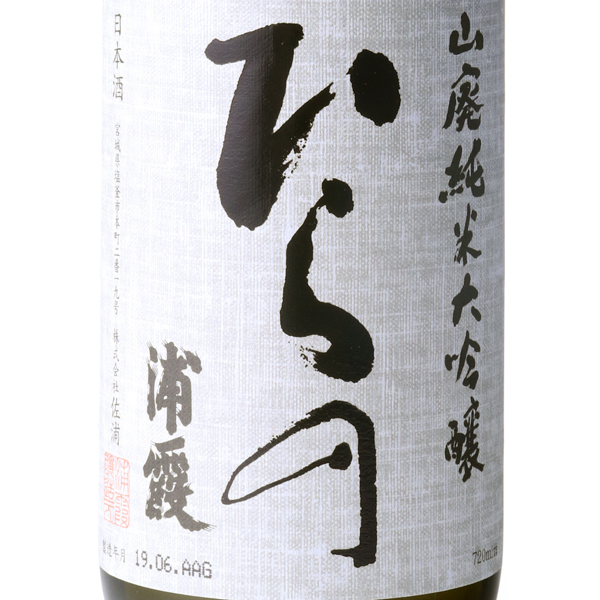 山田錦を40%まで磨き、低温でじっくりと醸しました。山廃仕込みで醸されたお酒は熟した果実のような華やかな吟香。しっかりとした酸味と米の旨みと程よいコクが感じられます。商品名のひらのは、浦霞醸造元の製造部長である平野重一氏の名前から命名いたしました。南部杜氏を代表する杜氏である、平野重一氏の酒造りの技と誇りを蔵人が継承していく為、伝統的な山廃酒母を使用した昔ながらの製法と、平野氏が培ってきた匠の技を結晶させた商品であり、浦霞を代表する逸品です。