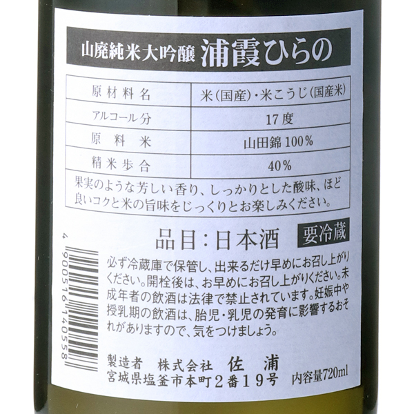 浦霞 山廃純米大吟醸 ひらの