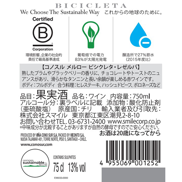 メルロー ビシクレタ・レゼルバ / コノスル