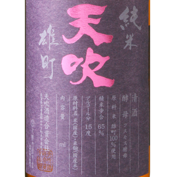 この酒「旨いね~」のために元禄年間(1688年~1704年)創業。300年の歴史を持つ天吹酒造は、みのり豊かな佐賀平野で収穫された酒米と背振山系のまろやかな伏流水を原料としています。農薬、除草剤、化学肥料を一切使わない合鴨農法で作った安全な良米、脊振山から流れ出る良水、酒造りに欠かせない豊かな気候。そして花からの贈り物、花酵母。これらの自然の恵みを活かし、独自の製法で造る天吹は花酵母の華やかな薫りとお米本来の絶妙な旨味を麹のチカラで引き出し、お客様へ美味しさと共に安心をお届けいたします。永い歴史の中で蓄積された技を引き継いだ蔵人達が、自然界の力に魅せられて、真摯に美酒造りを追求しています。