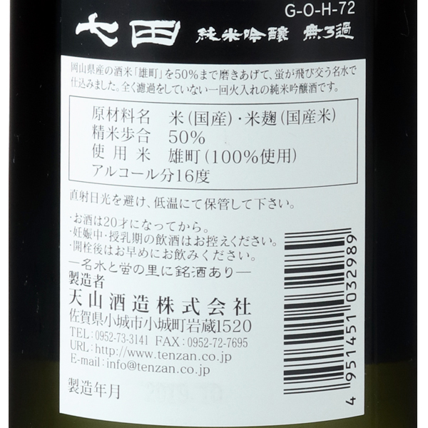 こだわりは天山伝統のDNA天山酒造は文久元年、1861年創業。酒蔵の前を流れる祇園川は天山山系の水を集める清流、源氏ボタルの発祥の地です。天山の仕込み水にはこの秀峰・天山の中腹から清冽な湧き水を専用の水道で蔵まで導き使用しています。この天山の伏流水は酒造りにとっては理想的な名水で鉄分が無く、しかもカルシウムやマグネシウムといったミネラル分を含んだ硬水です。そのため比較的マイルドな酒質の多い佐賀県において、天山ではしっかりとした味わいの男酒がうまれます。平成15年からは人・米・酒(じんまいしゅ)プロジェクトをスタート。地域の人と酒造りを結びつけ、日本酒という文化を次代に伝えていく働きをしています。その他にも佐賀県一万人で乾杯プロジェクなどを企画、先代から引き継いだ理念「不易流行」を掲げ、常に攻めの姿勢で酒を造っています。