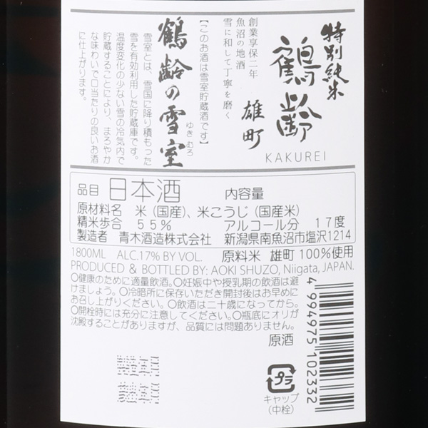 鶴齢 特別純米 瀬戸産雄町