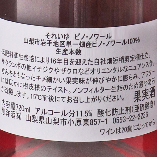 それいゆ ピノ・ノワール 2018 / 旭洋酒