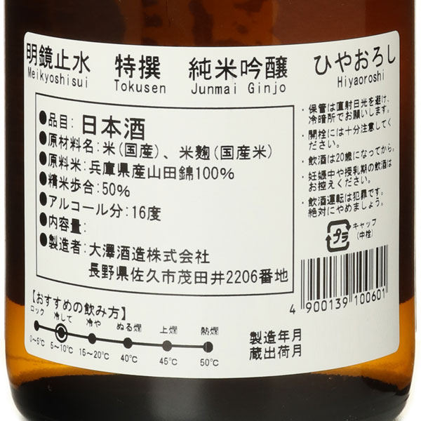 明鏡止水 特撰純米吟醸 ひやおろし