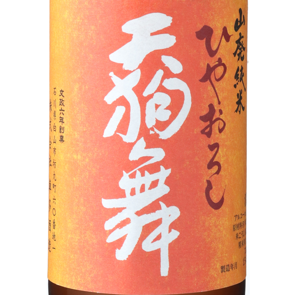 天狗舞の定番商品、山廃純米のひやおろし。冬に醸したお酒を秋口まで貯蔵熟成させたひやおろしは、丸みを帯びた深い味わいです。季節限定の味わいを?秋鮭の西京焼きや豚の角煮などと共にお楽しみください蔵紹介