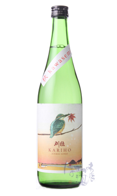 kawasemiシリーズの秋商品です。春夏を蔵内でゆったりと低温で貯蔵熟成し、円やかで香味あざやか、旨味の凝縮した味わいに育ちました。ラベルには秋の風景になった蔵の周辺が描かれています。蔵紹介
