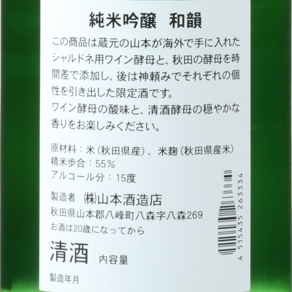 山本 純米吟醸 和韻 わいん