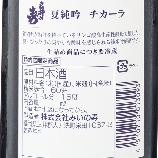 酒造りは、科学とセンスと情熱大正11年、1922年 福岡県三井郡大刀洗町に創業。「三井の寿」は地元福岡のみならず、東京や大阪、さらには世界の舞台でも高い評価を得ています。最近の技術による酒造りで化学も使いながら、自然学、人間学など様々な学びも含めた科学に基づく酒造り。また蔵元杜氏の井上宰継氏が持つ希有のセンスと美味しい日本酒を造るための情熱により、瞬く間に人気銘柄となりました。日本酒概念に捉われない「イタリアンラベル」シリーズや、山廃仕込による「美田」シリーズなど、数多くのお酒を生み出し日本酒ファンを増やし続けています。