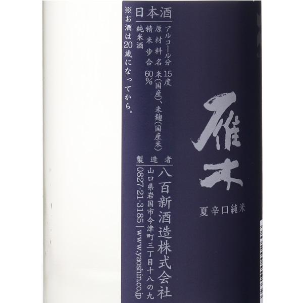 無濾過で雁木らしい、しっかりとした旨味を引き出しながら口当りは柔らかく、夏に軽快に飲めるよう甘さを極力抑えた旨辛口の夏酒です。ほのかな旨みを感じながらスルスルと飲めてしまう透明感とエッジの効いた切れ味で、辛く感じさせない辛口。ついつい盃が進んでしまう夏の食中酒です。蔵紹介