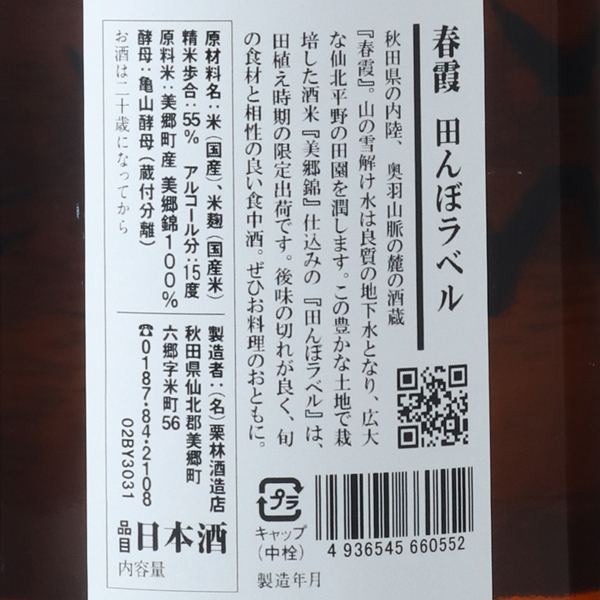 蔵の主力品種、契約栽培の美郷錦を使用し、オリジナル酵母の亀山酵母で醸しました。みずみずしい米のうま味と、ほのかな酸味と苦み、やさしい辛口の純米吟醸酒です。香りおだやかで、みずみずしく軽やかな味わいは旬の夏野菜などと相性よく季節にピッタリの食中酒となっております。ラベルは地元秋田の初夏の風景、田植え直後の田んぼをイメージしました。蔵紹介