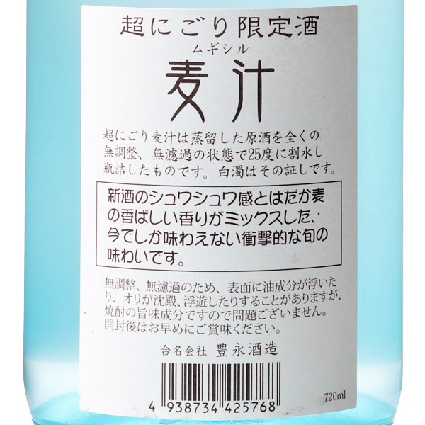 豊永蔵 限定超にごり麦汁 麦焼酎 25度 / 豊永酒造