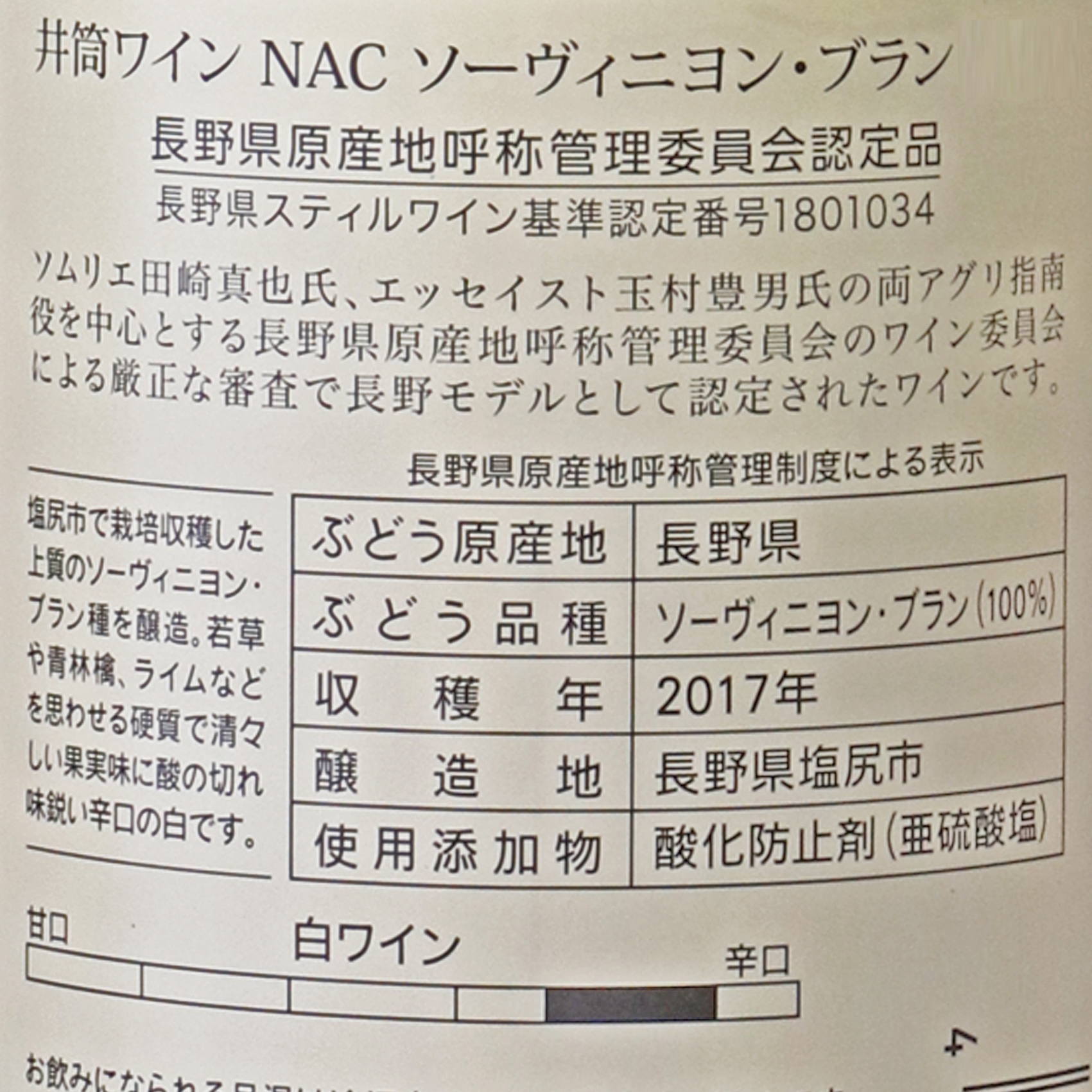 NAC ソーヴィニヨン・ブラン 2023 2024 / 井筒ワイン