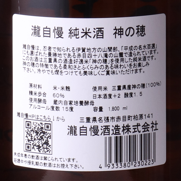 百人が一杯飲む酒より、一人が百杯飲みたくなる酒を目指して明治初年、1868年創業。三重県の山間部、奈良県との県境にある伊賀盆地にある酒蔵です。豊かな自然に恵まれ、蔵のすぐ近くには日本の滝百選に選ばれた、国定公園赤目四十八滝の渓谷が続きます。寒暖差の大きな気候と良質の水に恵まれ、良い米の産地として知られる伊賀地方は、銘酒の産地でもあり、伊賀の酒は地元の人々の日常酒として長く愛されてきました。コクと押しのある辛口酒はこの酒でなくてはという愛飲家も多く、その期待に応えるべく瀧自慢酒造では「百人が一杯飲む酒より、一人が百杯飲みたくなる酒」を目指したブレない姿勢で日々酒造りに向き合っています。