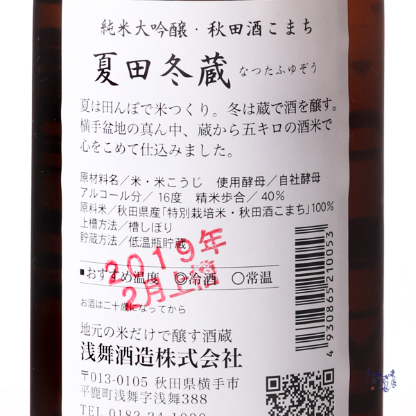 夏田冬蔵は定番商品以外に様々な酒米や造りにチャレンジしていく小仕込みシリーズです。こちらは大切に育てた秋田酒こまちで醸した純米大吟醸。氷温冷蔵庫で瓶貯蔵し、ピュアな旨味を残したやわらかな味わいが優しく広がります。蔵紹介