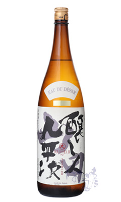 EAU DU DESIRとは「希望の水」という意味を持つ、醸し人九平次の代表銘柄。熟す直前の果実のニュアンスとエキゾチックなスパイスの香り、柑橘を少し絞ったような苦みのアクセント、味全体を下支えする酸味、幾重にも折り重なった味が余韻へと繋がります。取り扱ってくれている酒販店への恩返しのため、いつか世界の三ツ星レストランに醸し人九平次をオンリストさせてみせますと語り、2004年にフランスで実現。有言実行の本当に輝かしい造り手です。