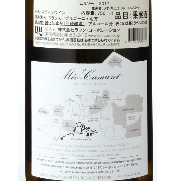 ブルゴーニュの神様と呼ばれる故アンリ・ジャイエのエスプリを継ぐ、優良ドメーヌ!所有する大半をグラン・クリュ(リシュブールを筆頭に4銘柄)とプルミエ・クリュが占めます。こちらは、そんな彼らがネゴシアンとしてリリースする1本。木樽の風味に、柑橘類を彷彿とさせるフレッシュな酸味が見事に調和。ムルソーらしいリッチさを持ちながらも、メオ・カミュゼらしい優美さを携えた味わいです。